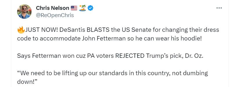 “John Fetterman finds it hilarious that he’s turned the senate into a coddling daycare for an emotionally stunted man-child with severely arrested development.”