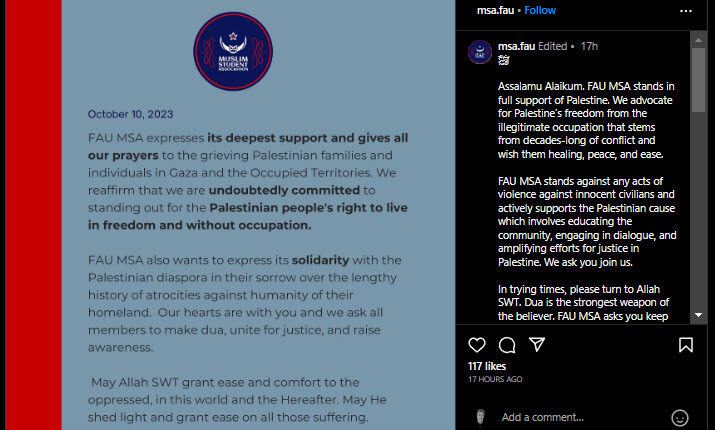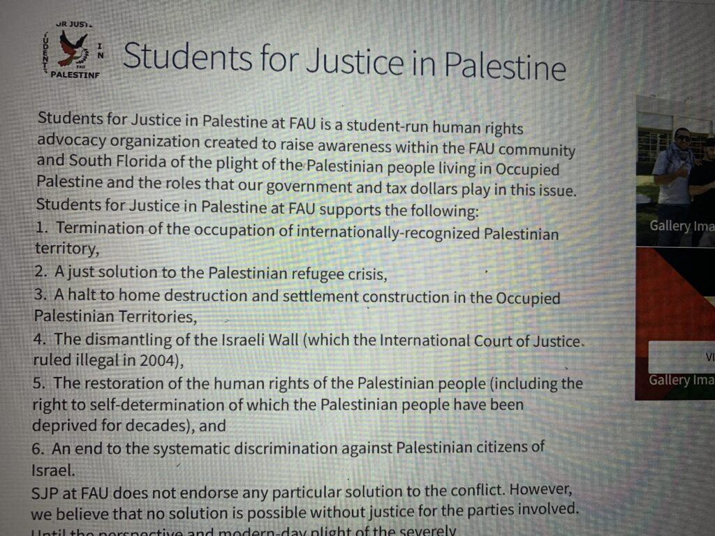 One might wonder why FAU, a school in Boca Raton, Florida, where a considerable Jewish population resides, would have four pro-Palestinian groups at a state-funded school funded with taxpayer dollars. The mission of one of the groups is to restore justice for “occupied Palestine.” After caving to pressure, FAU issued statements supporting Israel, so why are these groups on campus, and will FAU denounce them and end them?